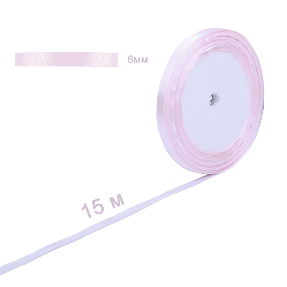 Лента атласная светло-розовая 6 мм х 15 м