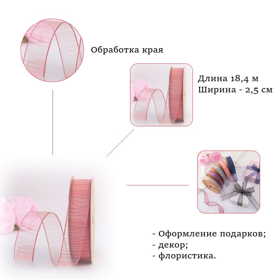 Лента из органзы полупрозрачная.