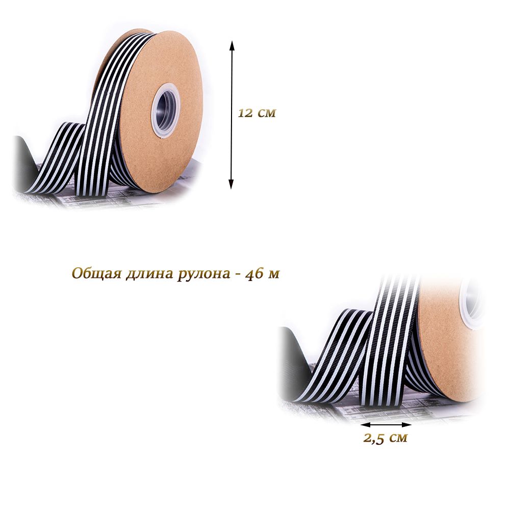 Длина рулона - 46 м, ширина ленты - 25 мм.
