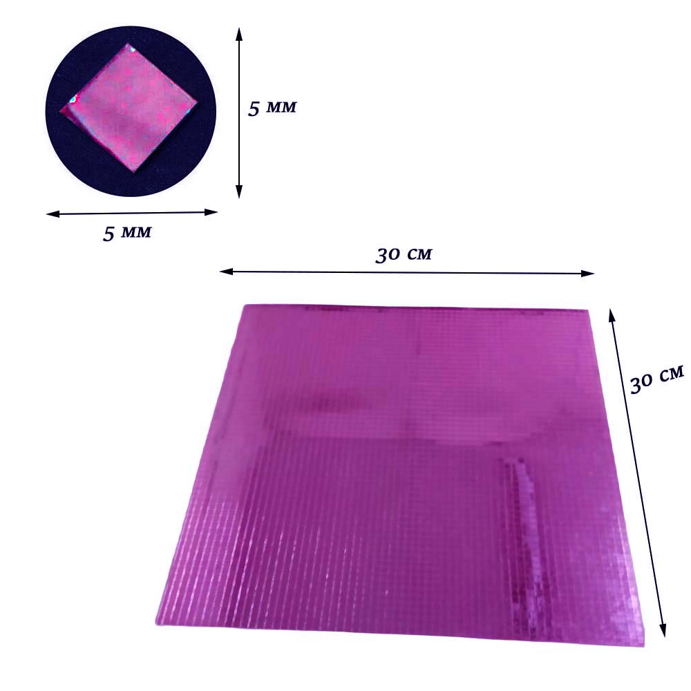 Лента самоклеящаяся зеркальная мозаика стекло, 30х30см 5х5мм, фиолетовый