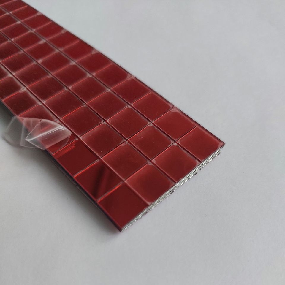 Лента самоклеящаяся зеркальная мозаика акрил 4см х 1м 10х10мм, красный