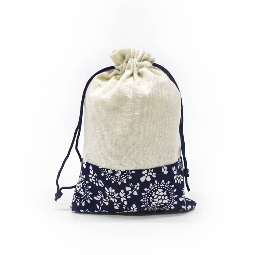 Мешочек из искусственного льна и сатина 13х18 см, бело-бежевый