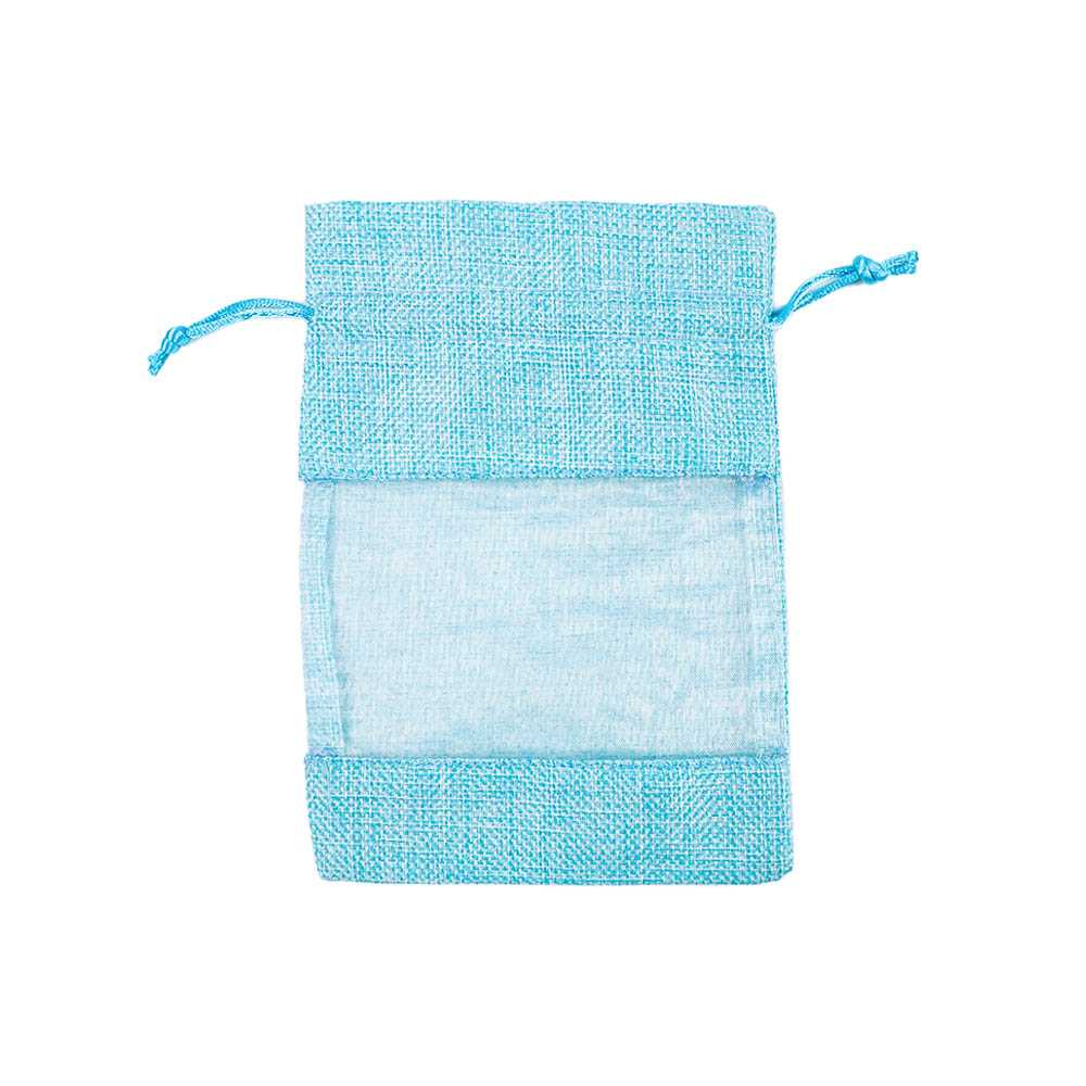 Декоративный мешочек с оригинальным дизайном: верх и дно выполнены из плотной мешковины, а центральная часть — из прозрачной органзы, благодаря чему содержимое хорошо видно со всех сторон. Такое сочетание материалов придаёт упаковке естественный, но при этом лёгкий и изящный вид.