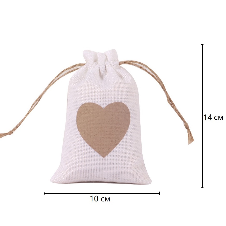 Мешочек из мешковины Сердце 10х14 см, белый+латте