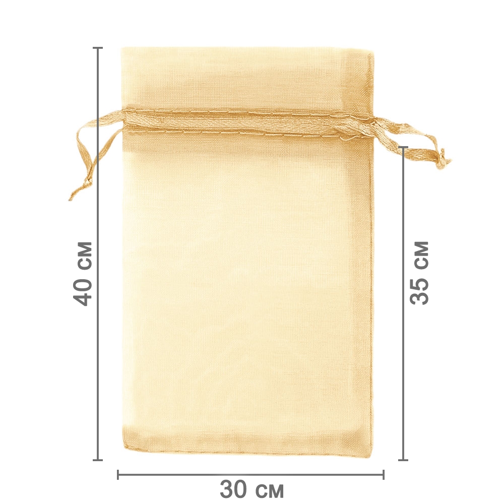 Мешочек из органзы 30 х 40 см — практичный аксессуар для упаковки крупных подарков и хранения предметов. Полупрозрачная ткань подчёркивает содержимое и придаёт праздничный вид.