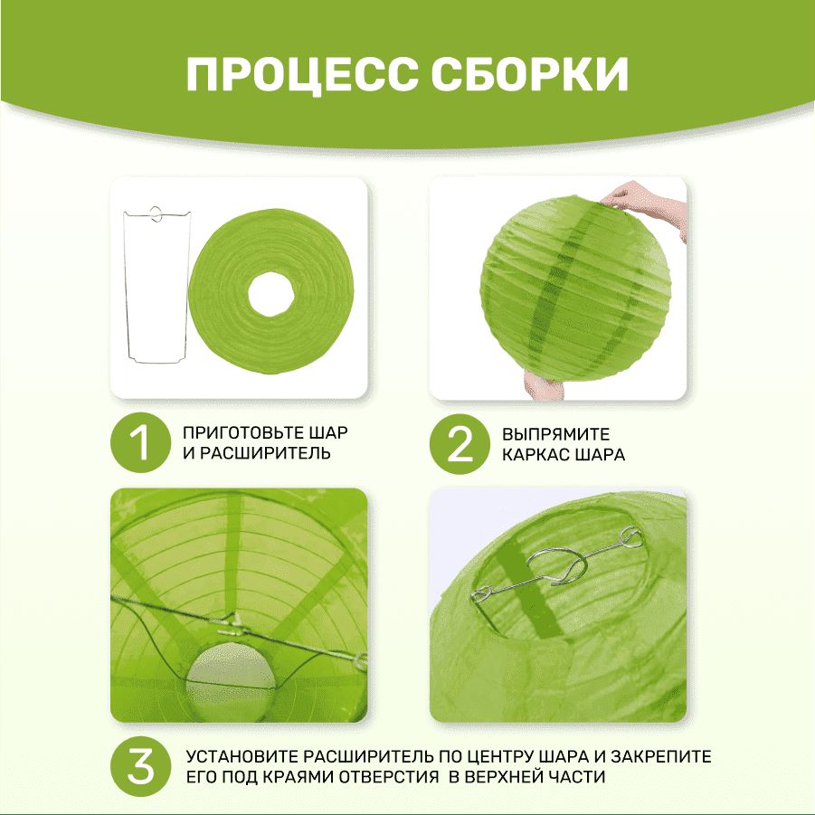 В комплект входит 8 бумажных фонариков и лента атласная.