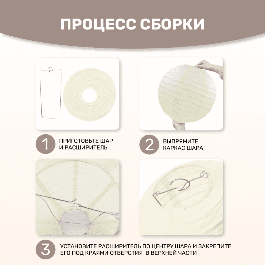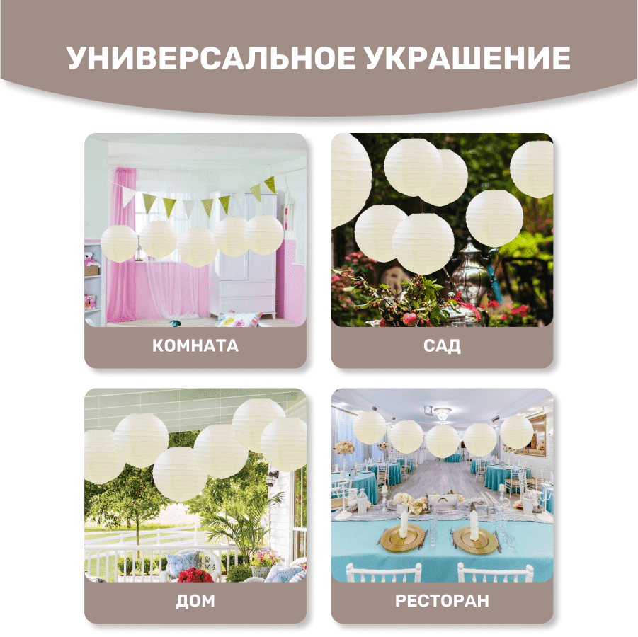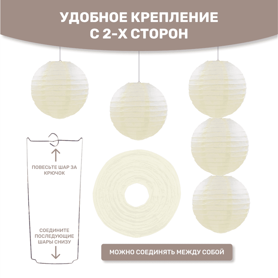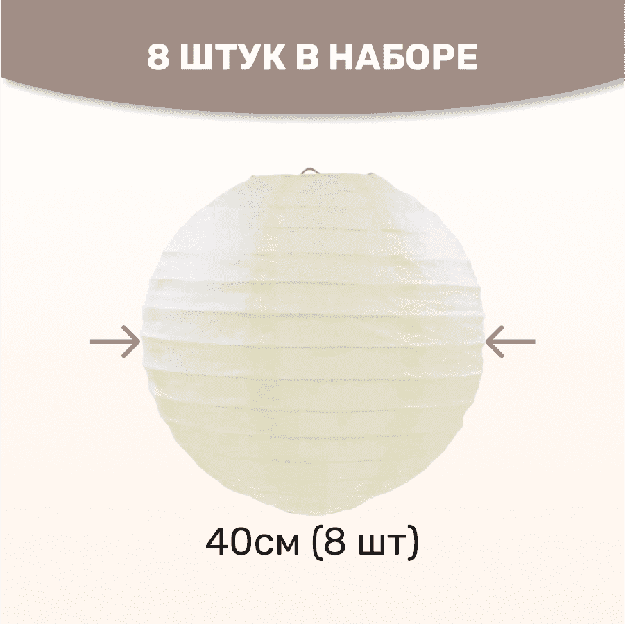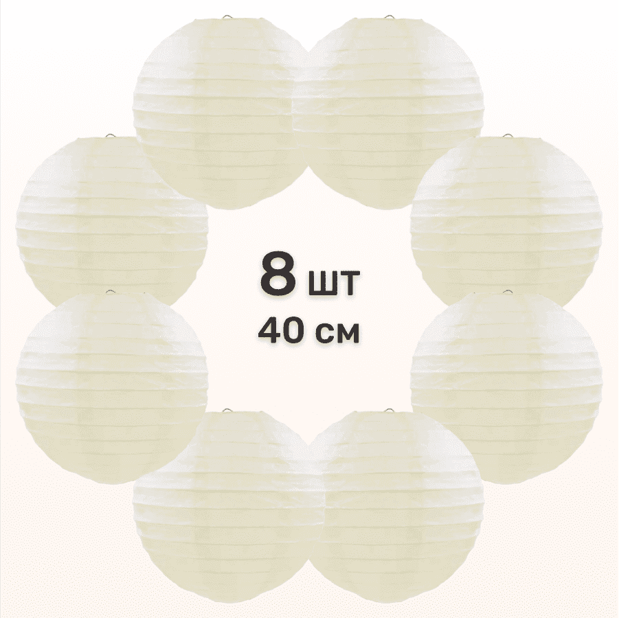 Комплект подвесные фонарики 40 см х 8 шт, айвори