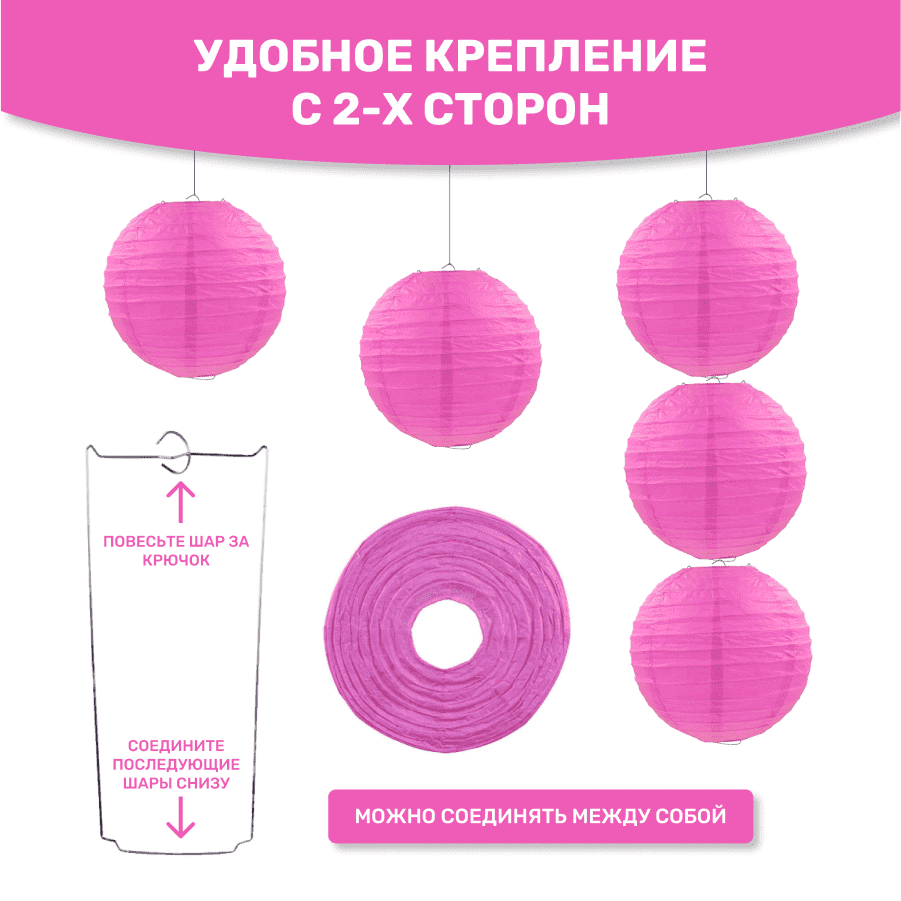 Комплект подвесные фонарики 40 см х 8 шт, малиновый