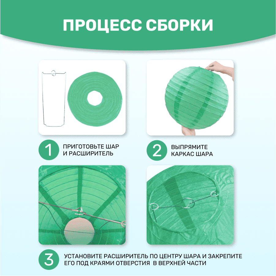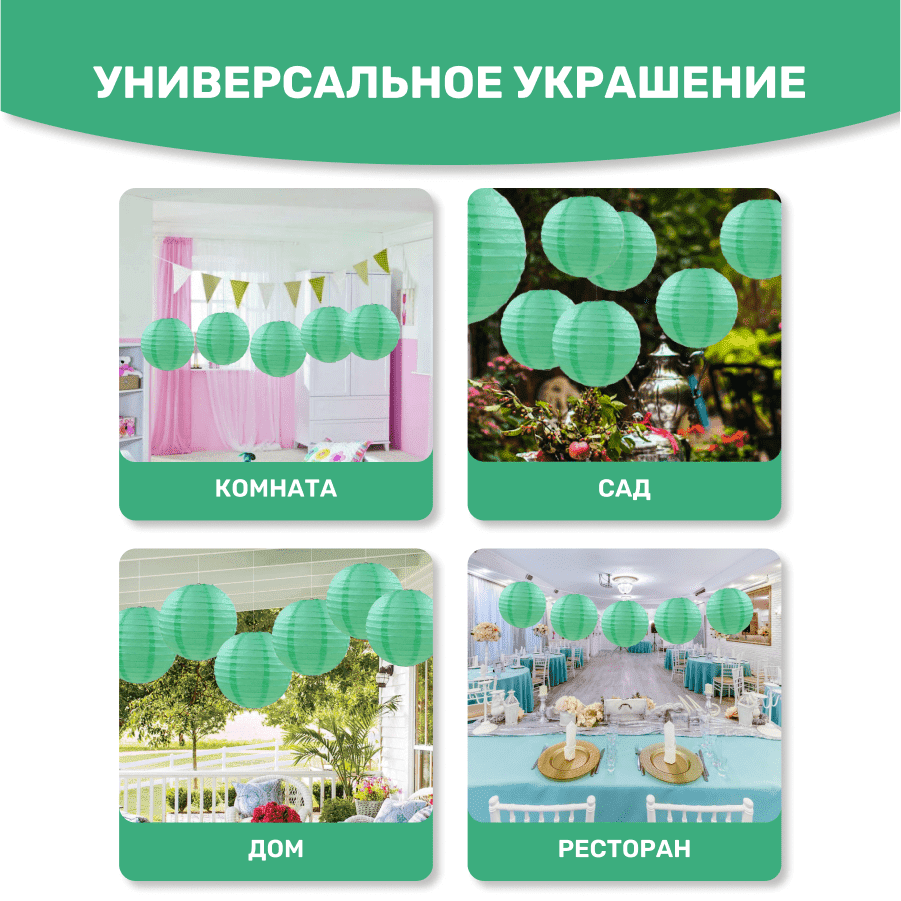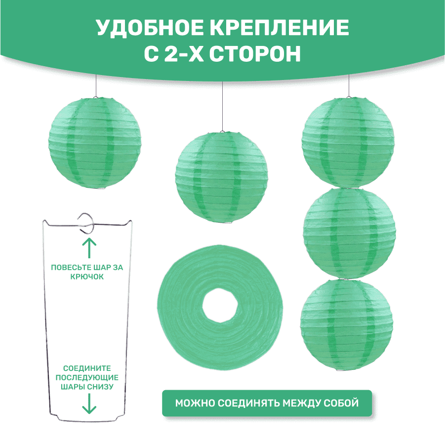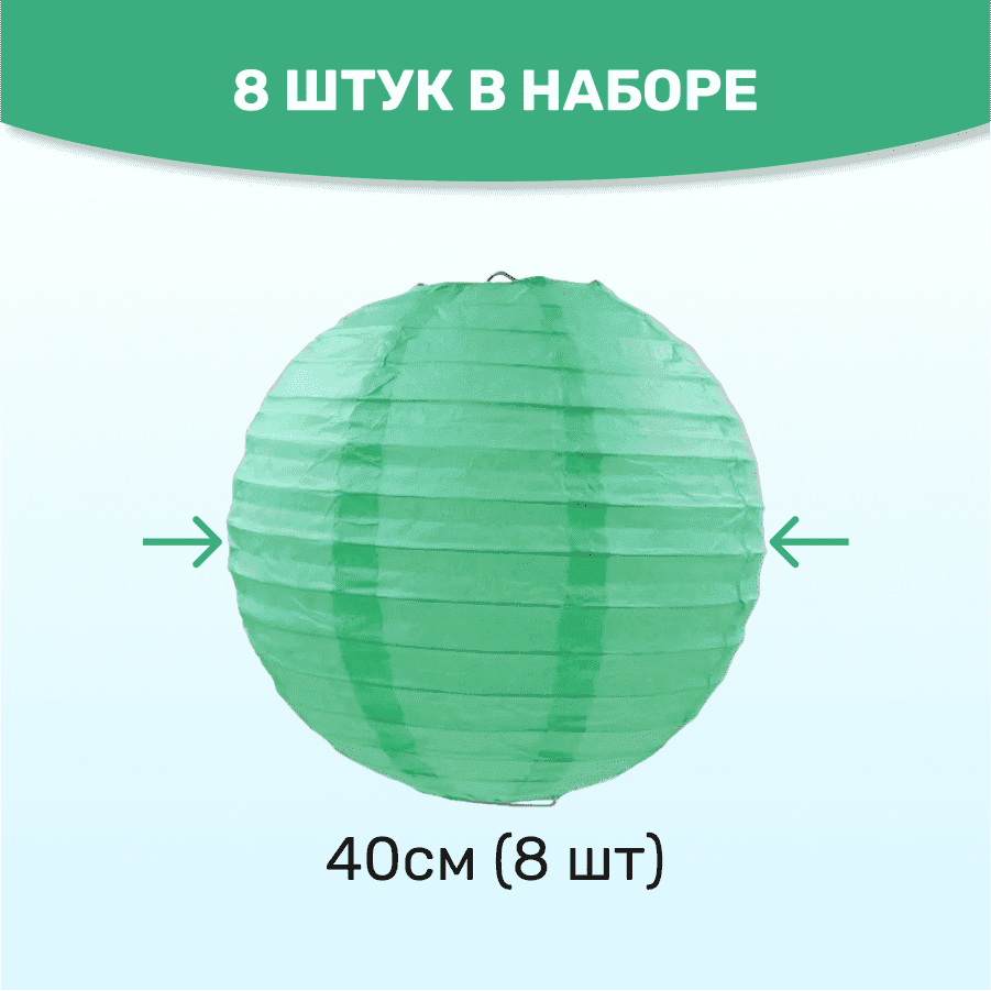 Комплект подвесные фонарики 40 см х 8 шт, мятный