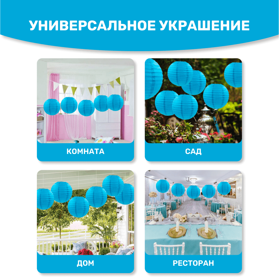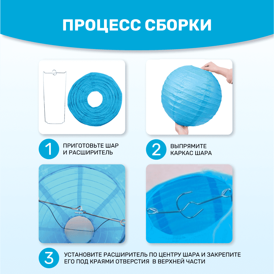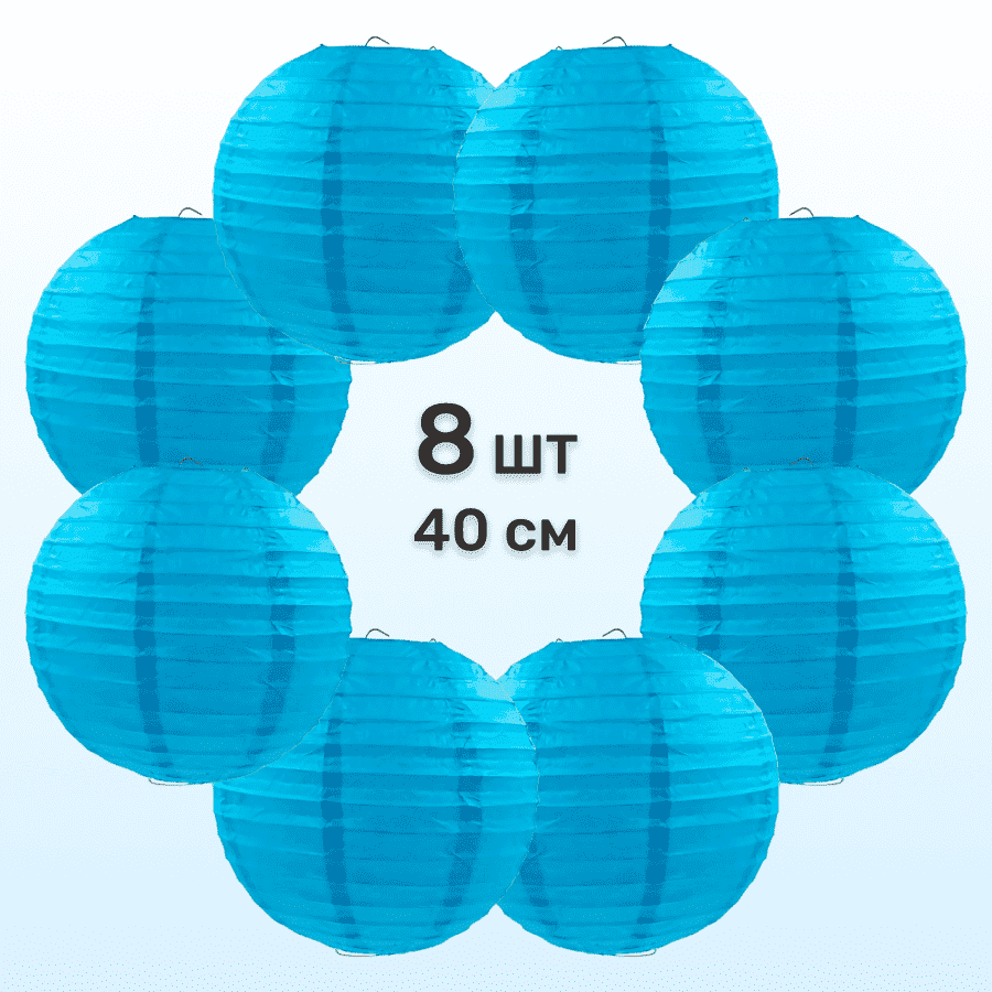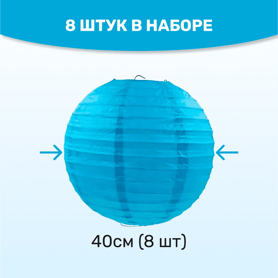 Комплект подвесные фонарики 40 см х 8 шт, синий