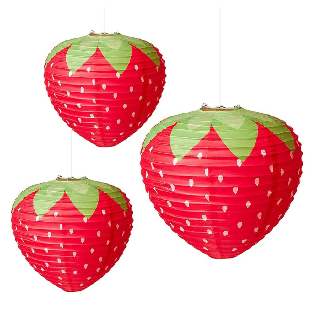 Набор подвесные фонарики "Клубнички" 3 шт 30х20х20см, красный