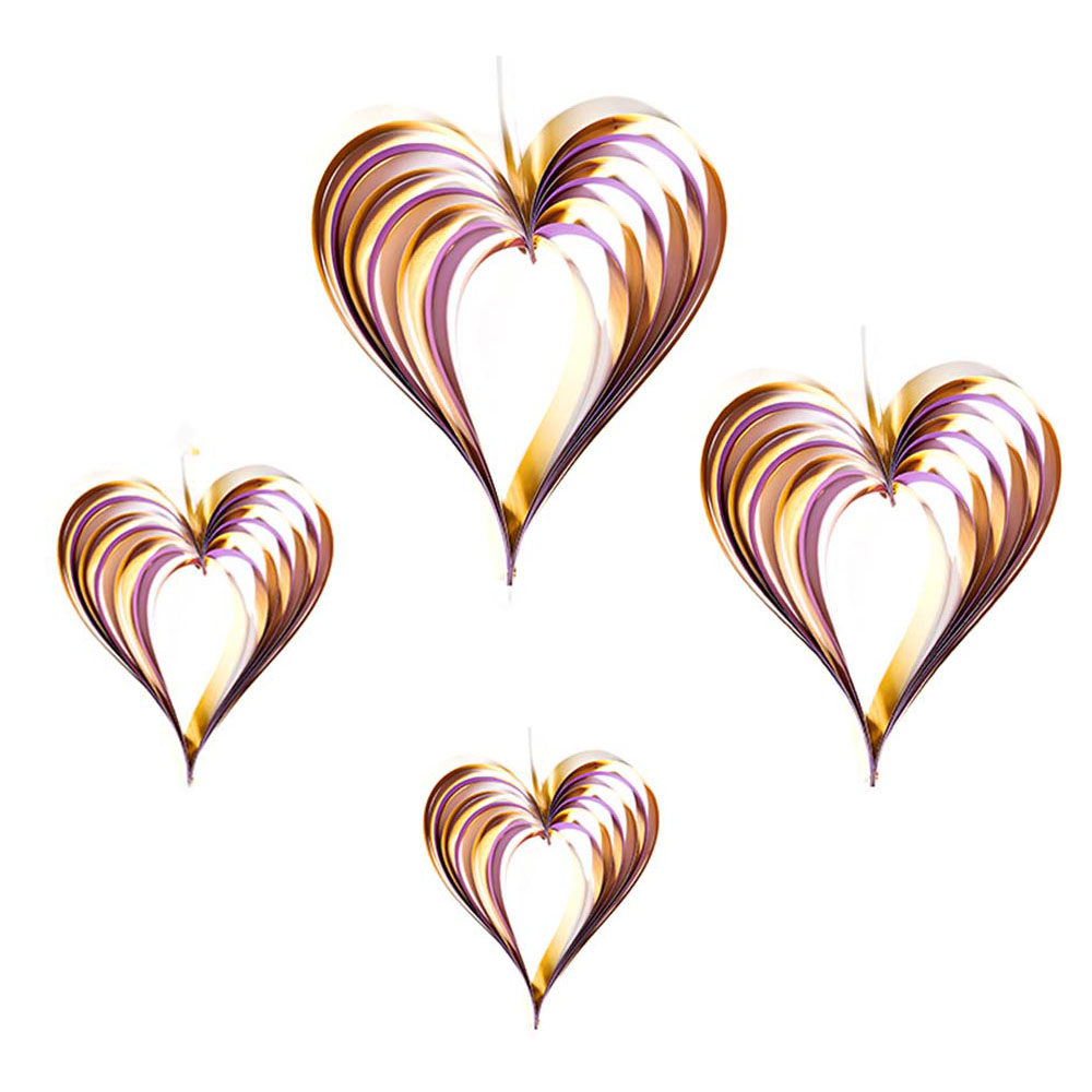 Набор подвесок Сердца 4 шт сиреневый+золото