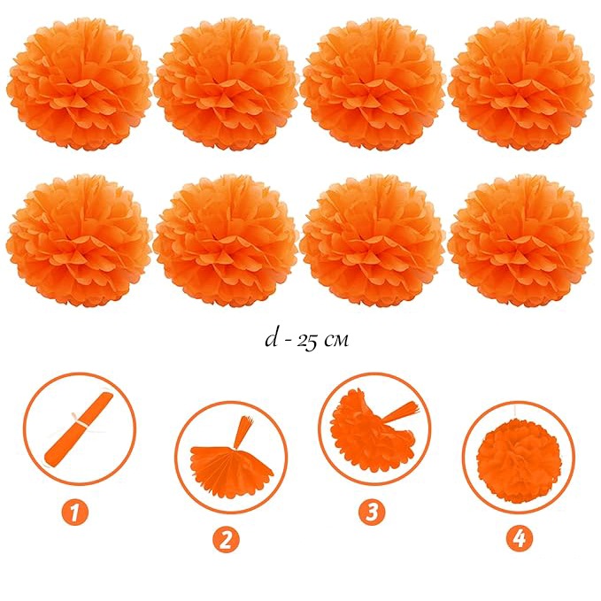 Помпоны из бумаги тишью 8 шт: