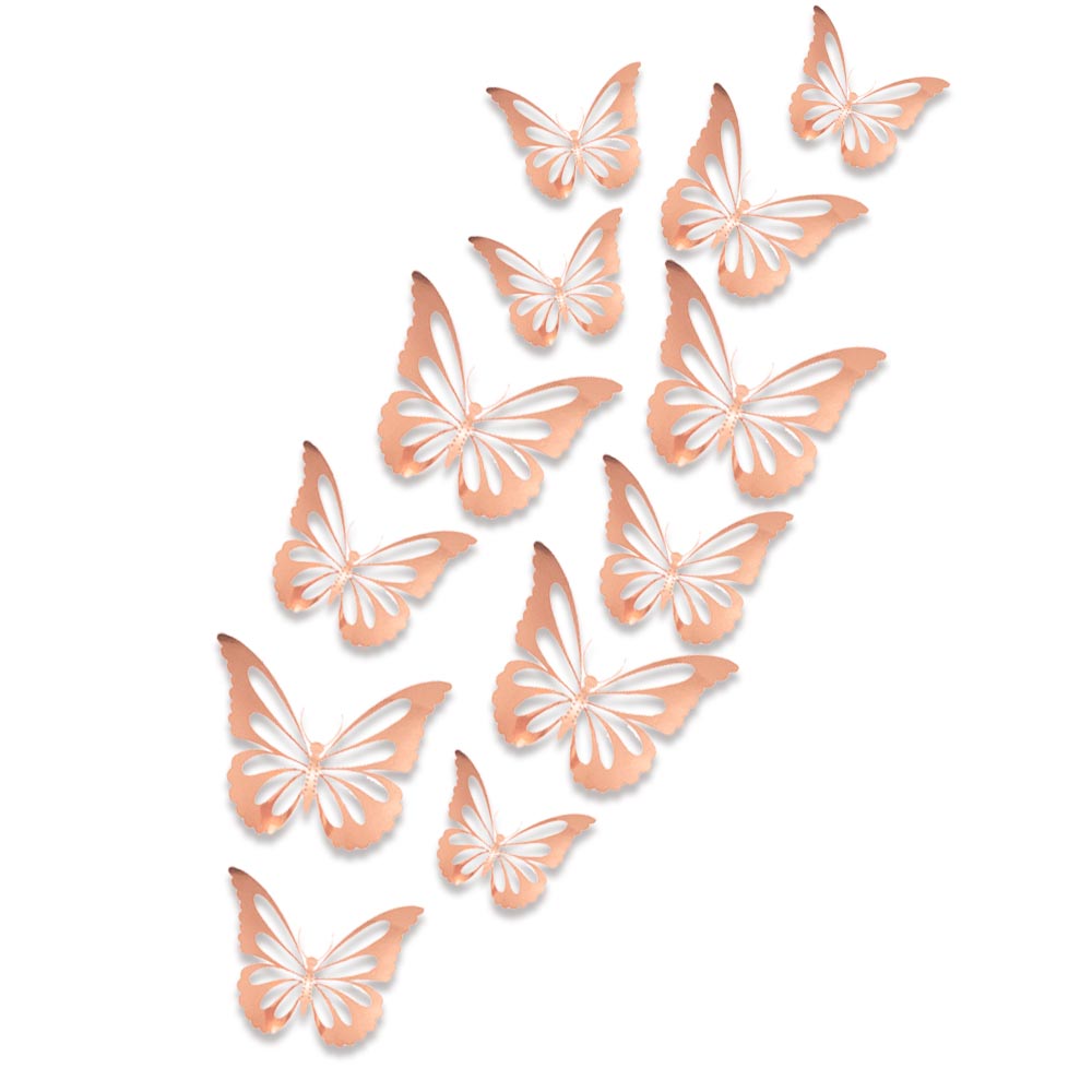 Наклейки Бабочки № 10 бумага металлик 12 шт розовое золото
