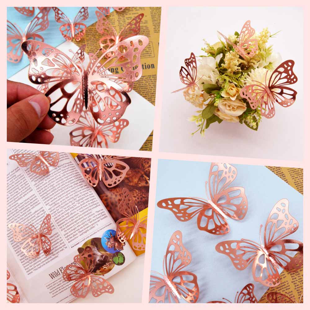 Наклейки Бабочки № 11 бумага металлик 12 шт розовое золото