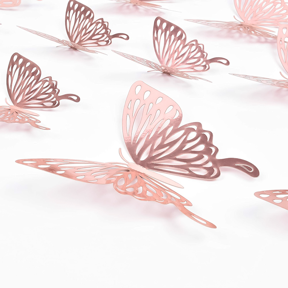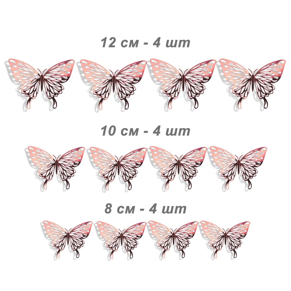 Наклейки Бабочки № 12 бумага металлик 12 шт розовое золото
