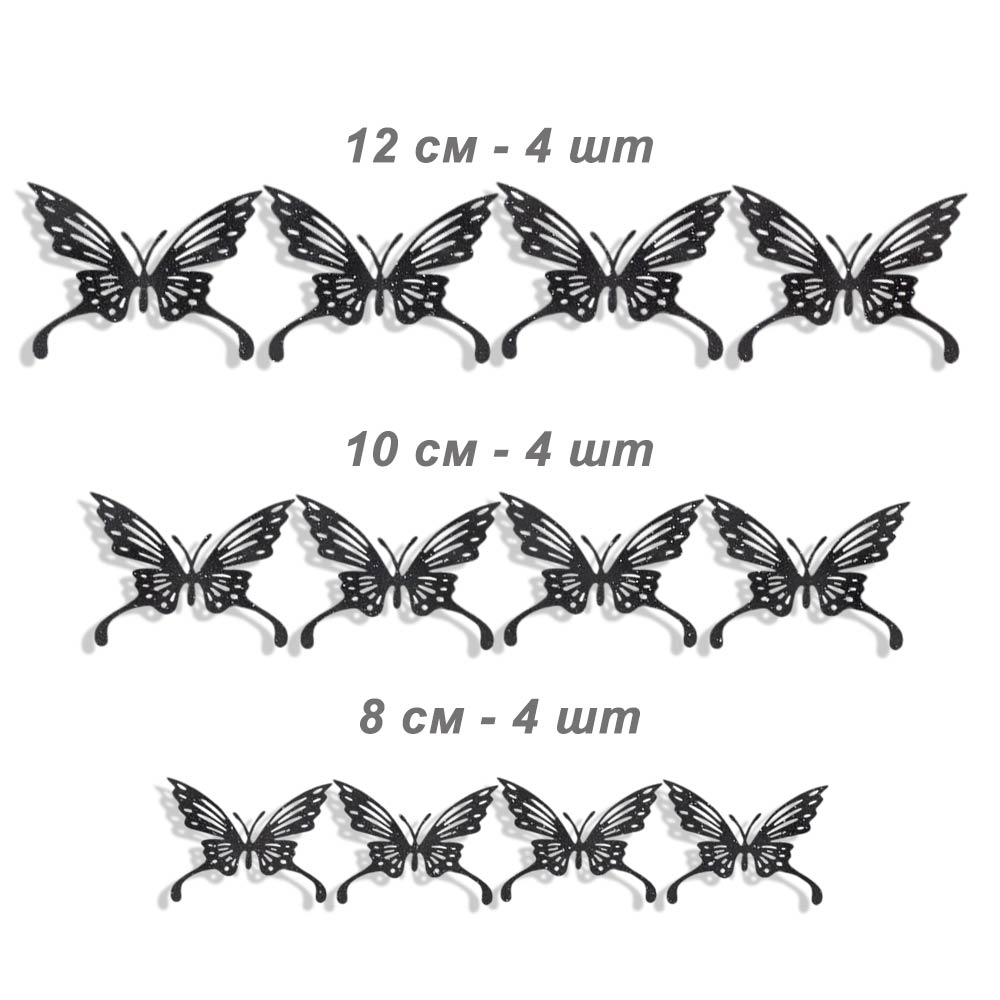 Наклейки Бабочки № 16 бумага перламутровая 12 шт черный