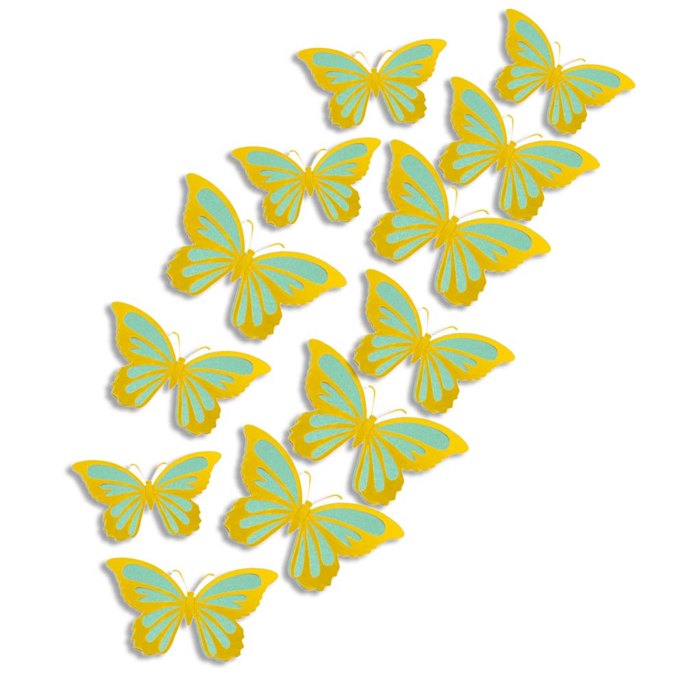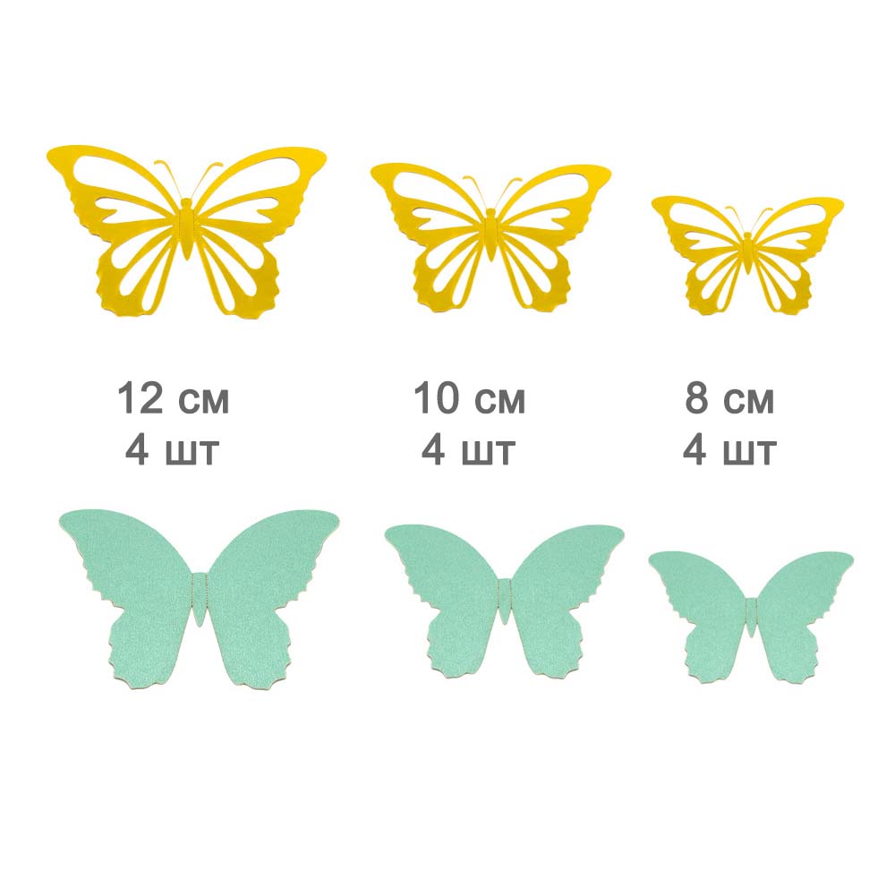 Наклейки Бабочки двойные перламутровые бумажные № 6 12 шт золото+мятный