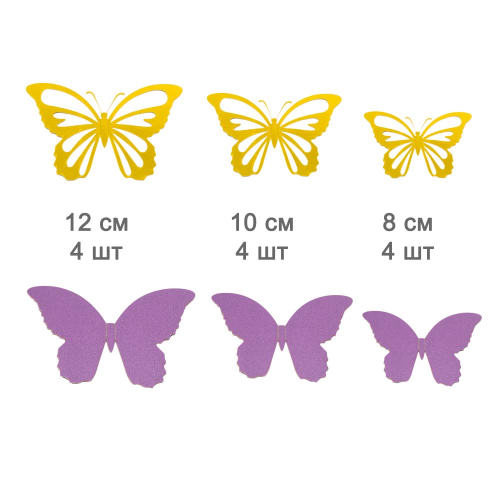 Наклейки Бабочки двойные перламутровые бумажные № 6 12 шт золото+св.сиреневый