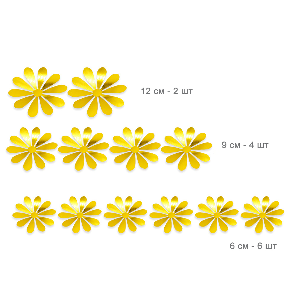 Цветочек выполнены из бумаги с эффектом металлик, крепятся с помощью силиконовых клейких кругов, которые входят в комплект.