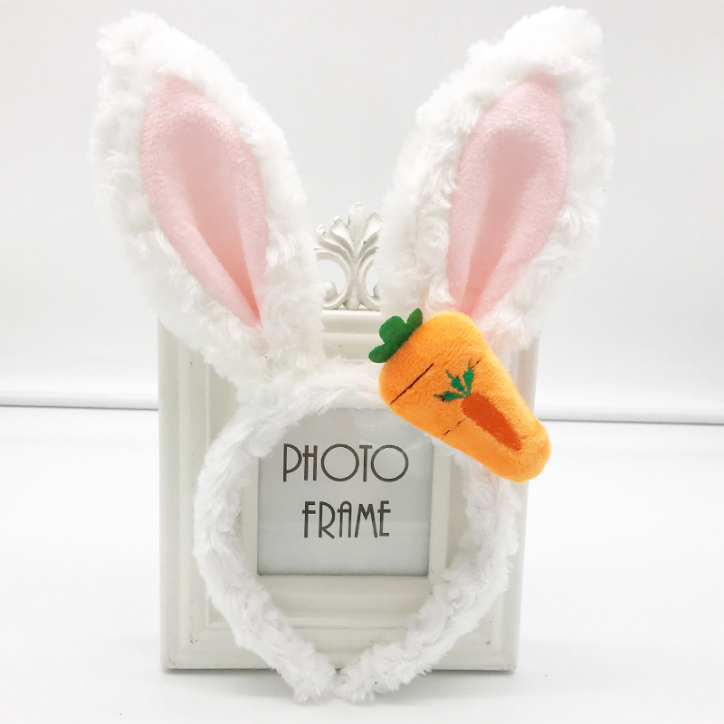 Ободок Заяц плюшевый с морковкой, белый