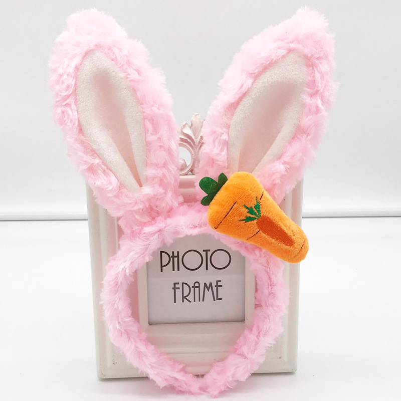 Ободок Заяц плюшевый с морковкой, розовый