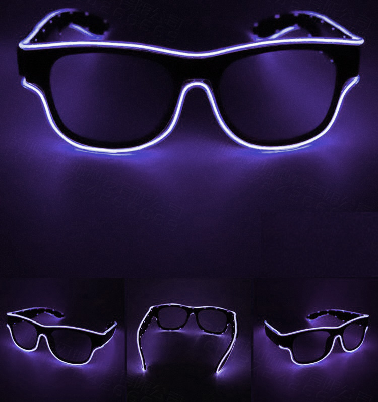 Светодиодные очки имеют прозрачную оправу, прозрачные линзы. Работают от встроенного аккумулятора, зарядка от USB.