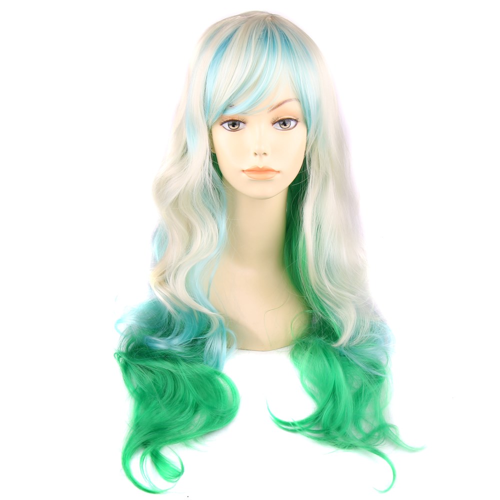 Парик радужный длинный изготовлен из современного искусственного материала.