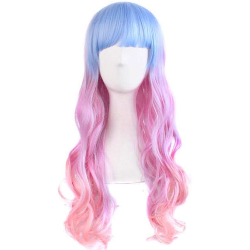 Парик радужный длинный изготовлен из современного искусственного материала.