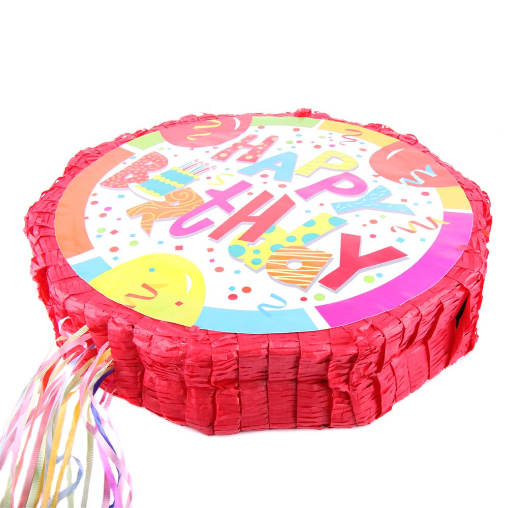Пиньяту наполняют различными угощениями и игрушками (до 900 гр наполнителя) и подвешивают к потолку или на дерево. В отличие от традиционной пиньяты, пиньяту с лентами разбивать не надо. Нужно по очереди тянуть за специальные веревочки, только одна из которых раскроет пиньяту.Диаметр пиньяты -45 см
