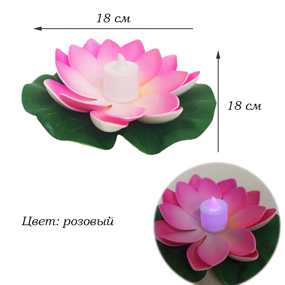 Плавающий фонарик Кувшинка со свечей 18х18 см, розовый