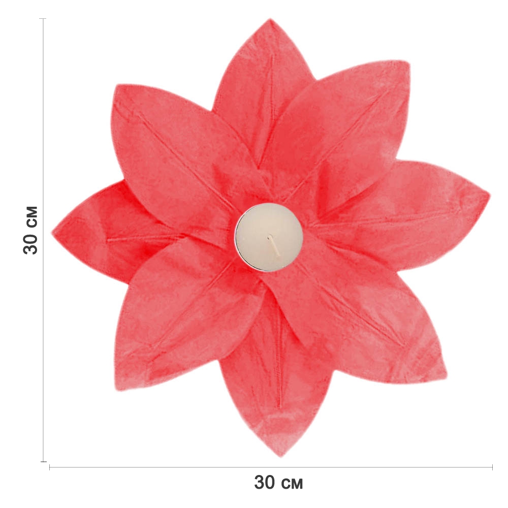 Плавающий фонарик Лотос 30х30 см — красивый декоративный элемент для создания свечных композиций. Центральное отверстие позволяет удобно установить чайную свечу, создавая мягкое и уютное освещение.