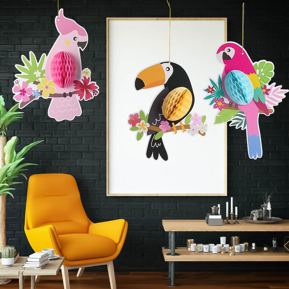Подвески Тропические птицы 3 шт, 29х20 см, 27х21 см, 24х20 см