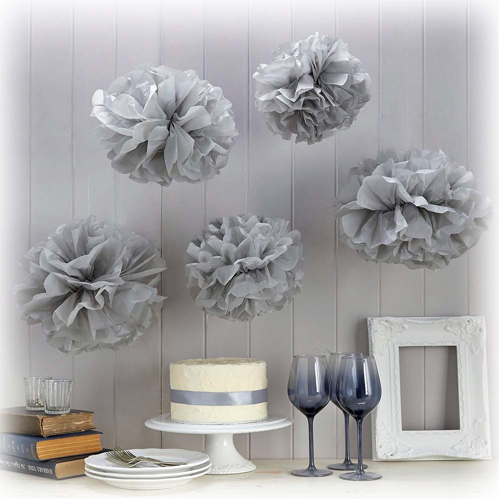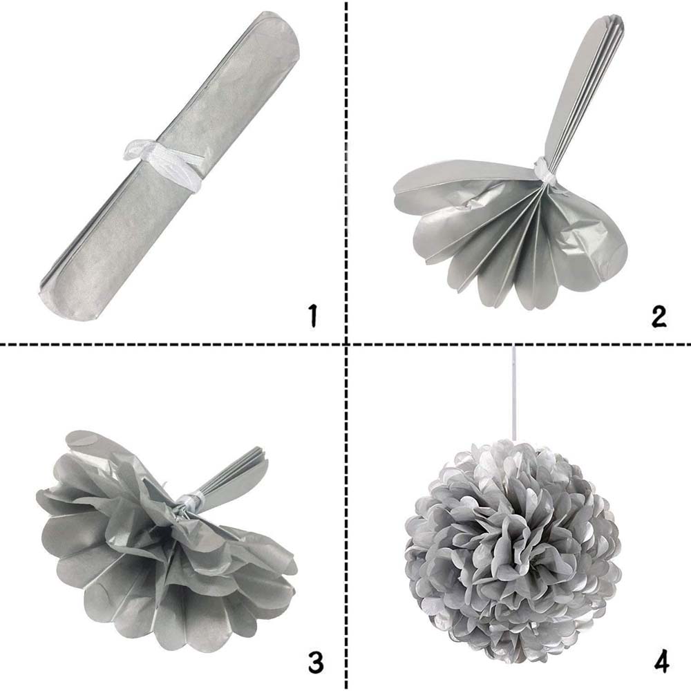 Помпон из бумаги 15 см серебро