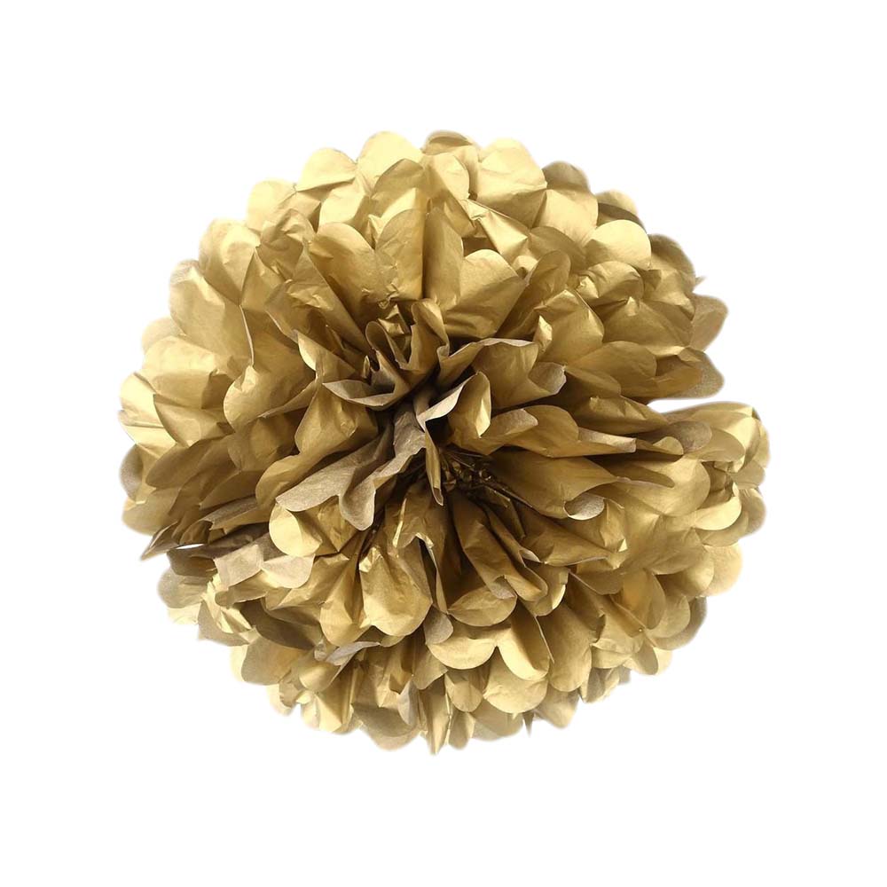 Золотой бумажный помпон диаметром 25 см — стильное и лёгкое украшение для праздников, фотозон, витрин и интерьера. Отлично подойдёт для дней рождений, свадеб, вечеринок и тематических мероприятий.