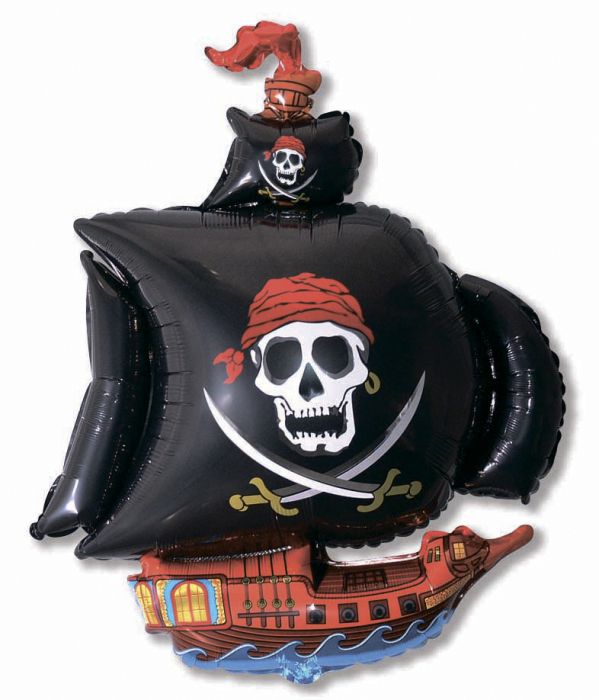 Шар 41х104 см Фигура, Пиратский корабль, Черный