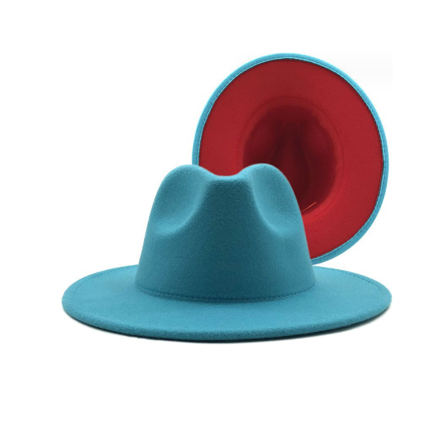 Шляпа Федора фетровая 2 цвета, голубой+красный