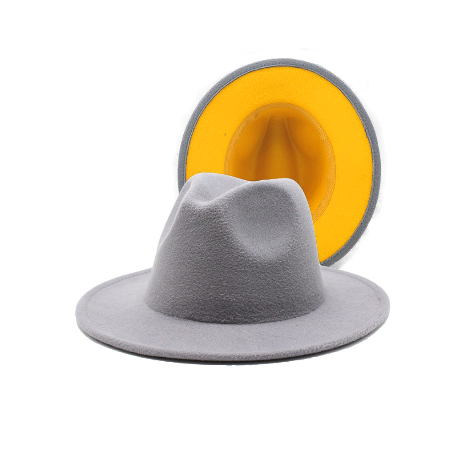Шляпа Федора фетровая 2 цвета, св.серый+желтый
