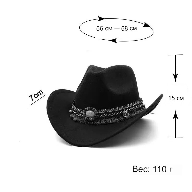 Шляпа ковбойская Бохо из фетра, серый