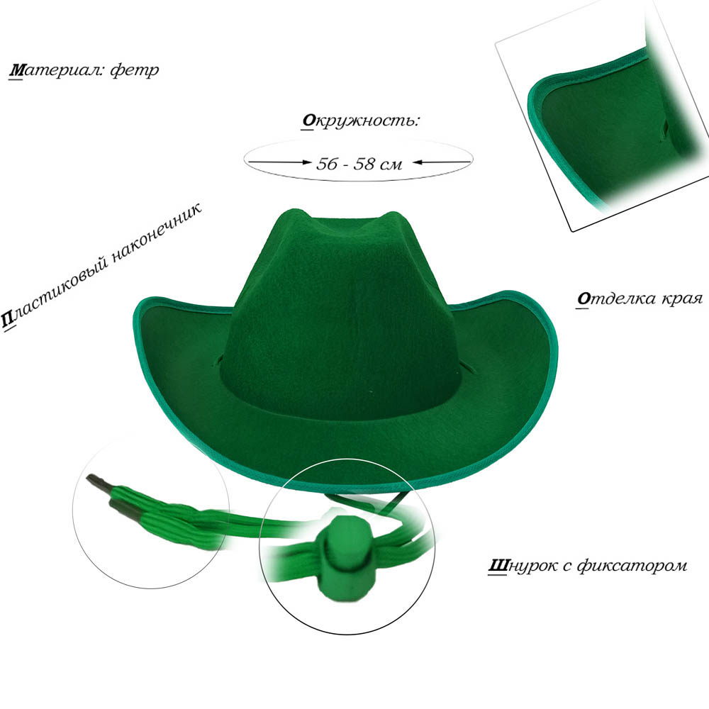 Шляпа ковбойская, зеленый - 1 шт.