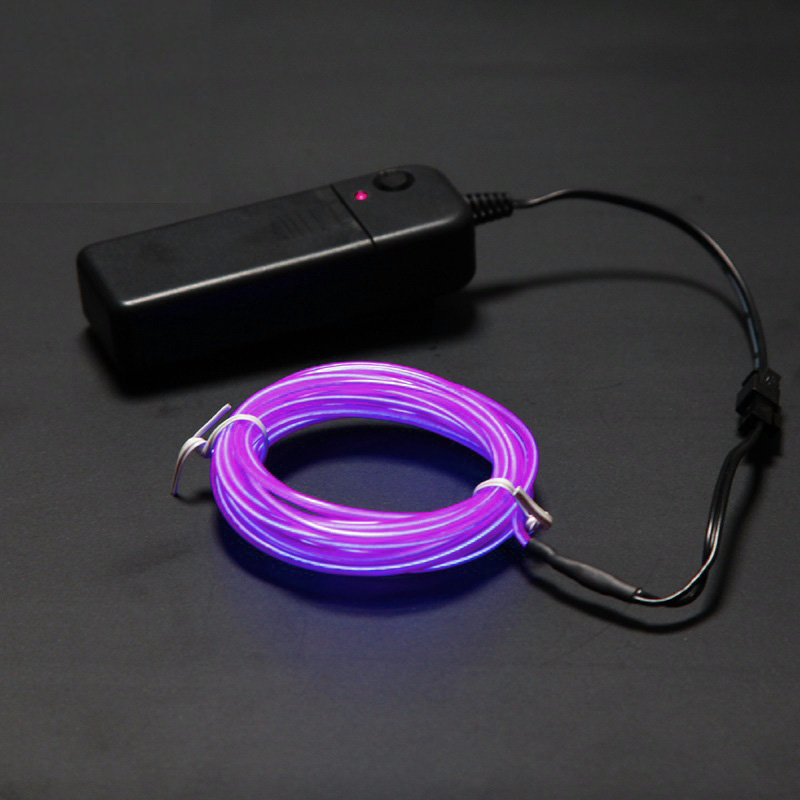 В комплекте с EL проводом, длинной 5 метра,  идет бокс с питанием от батареек, что позволяет его применять где угодно, даже на улице.  Работает от 2-х батареек 2АА (батареек в комплекте нет).