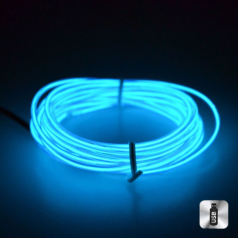 Шнур неоновый светящийся от USB 3 м, синий