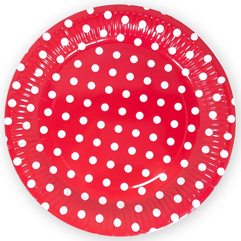 Тарелки красные, Точки, 7 дюйм, 6шт