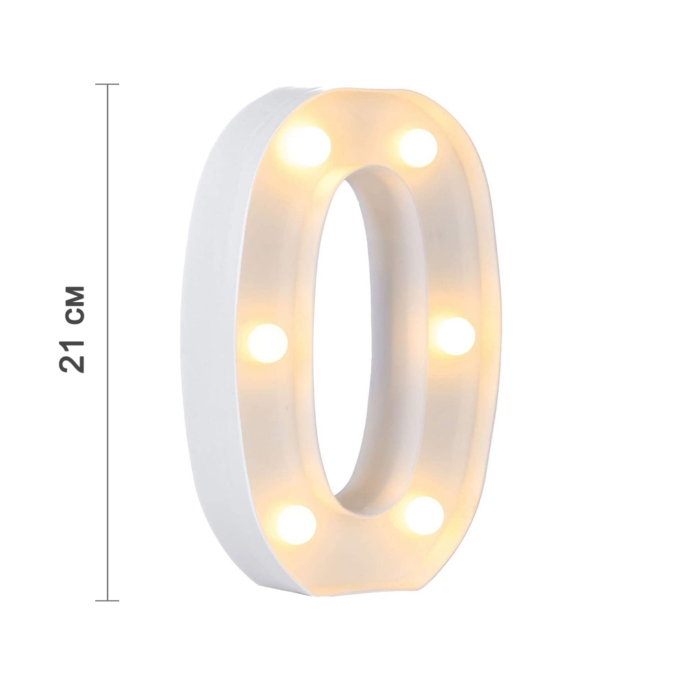 Цифра 0 светодиодная 21 см, от батареек , теплый белый