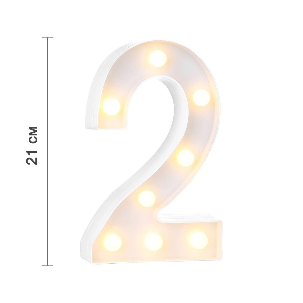 Цифра 2 светодиодная 21 см, от батареек , теплый белый