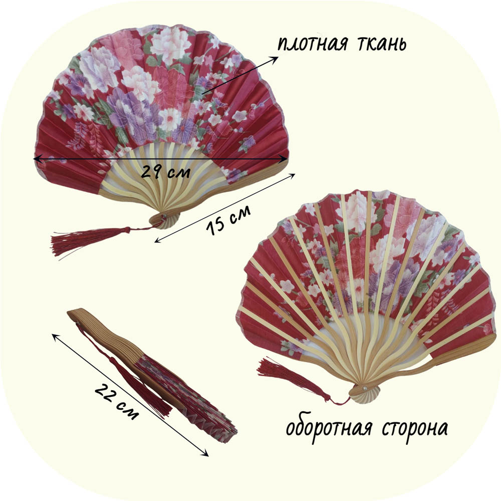 Веера тканевые с цветочным узором круглые 29х15см