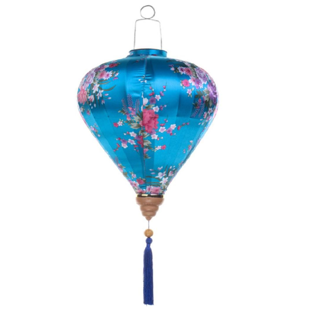 Это традиционные подвесные фонарики ручной работы, изготовленные из шелкового материала с элегантным цветочным узором, которые делают его изысканным и красивым.
