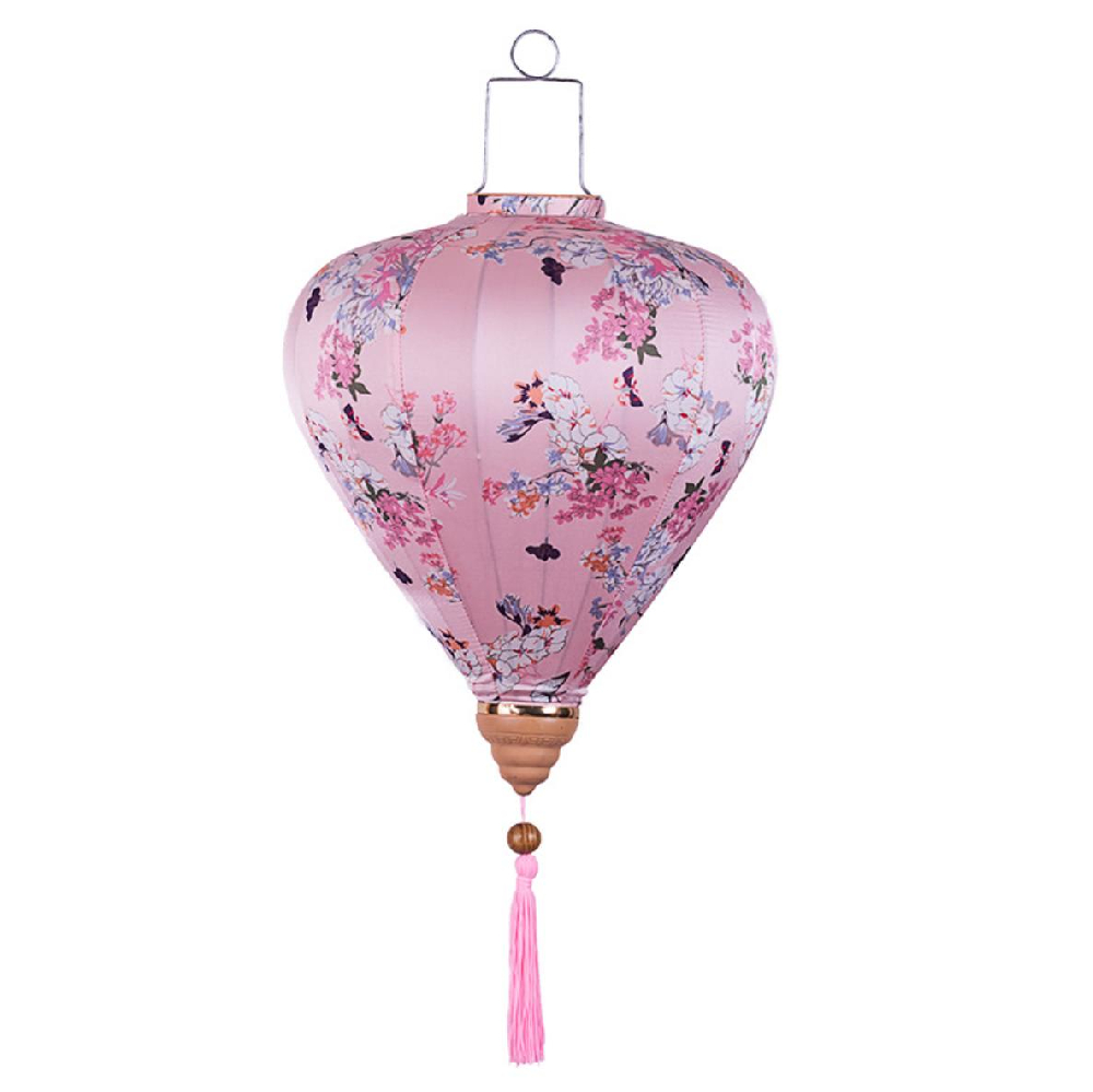 Это традиционные подвесные фонарики ручной работы, изготовленные из шелкового материала с элегантным цветочным узором, которые делают его изысканным и красивым.