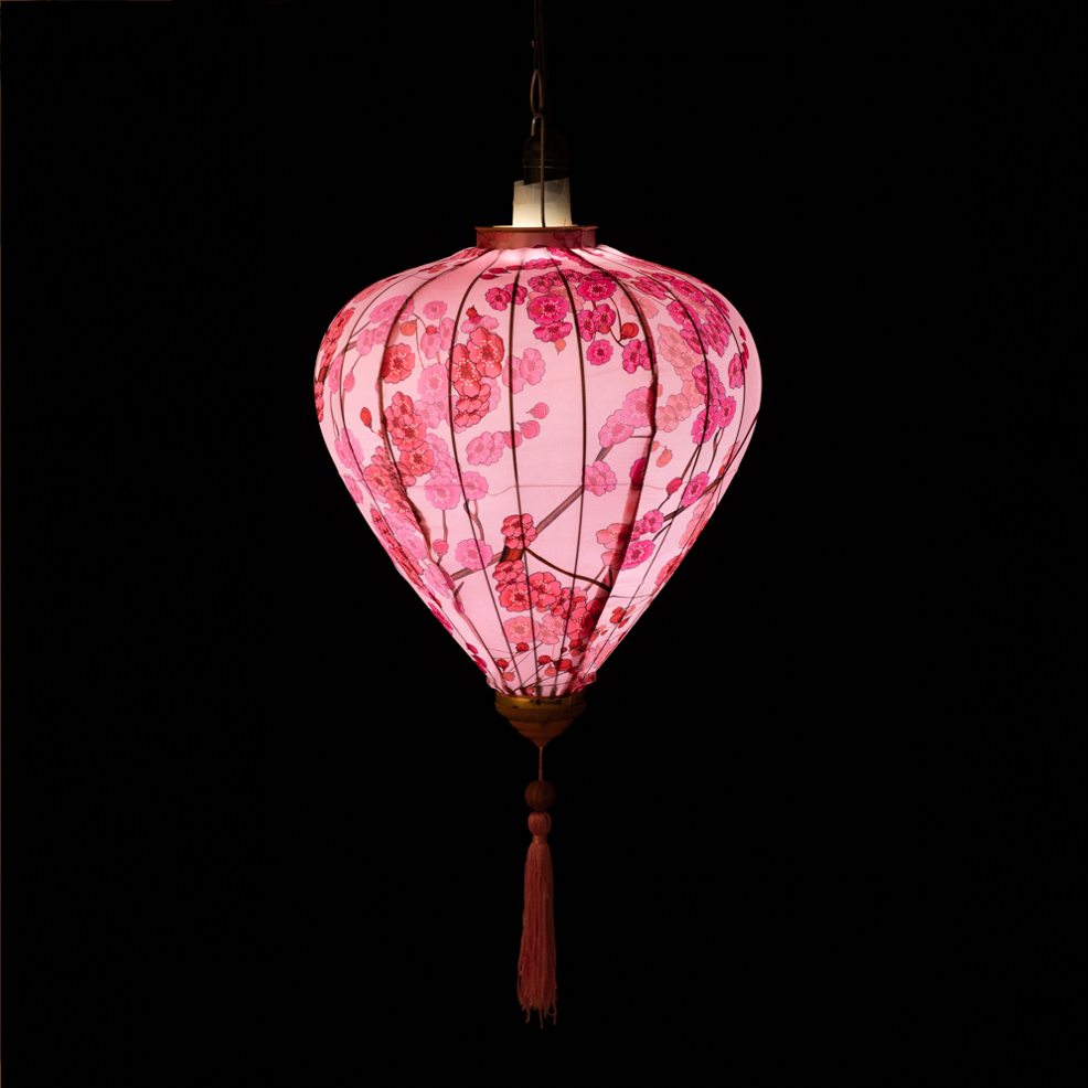 Это традиционные подвесные фонарики ручной работы, изготовленные из шелкового материала с элегантным цветочным узором, которые делают его изысканным и красивым.