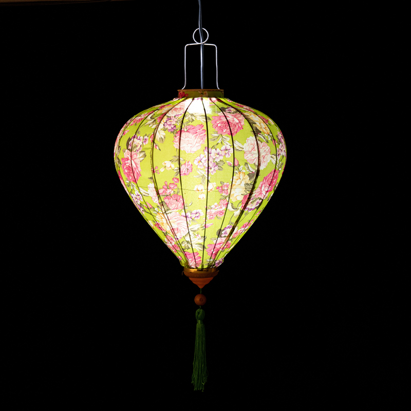 Это традиционные подвесные фонарики ручной работы, изготовленные из шелкового материала с элегантным цветочным узором, которые делают его изысканным и красивым.